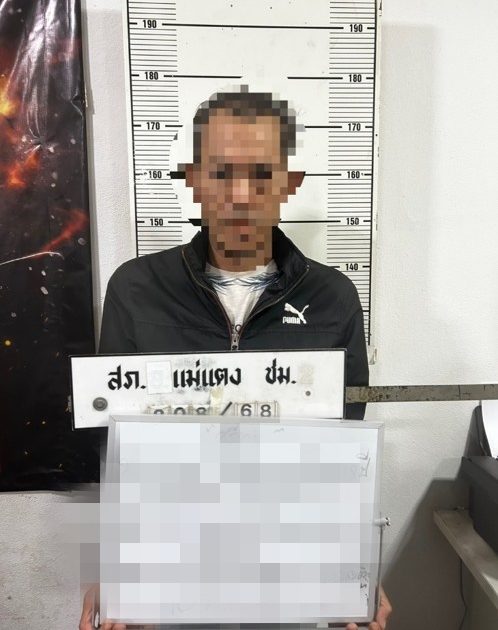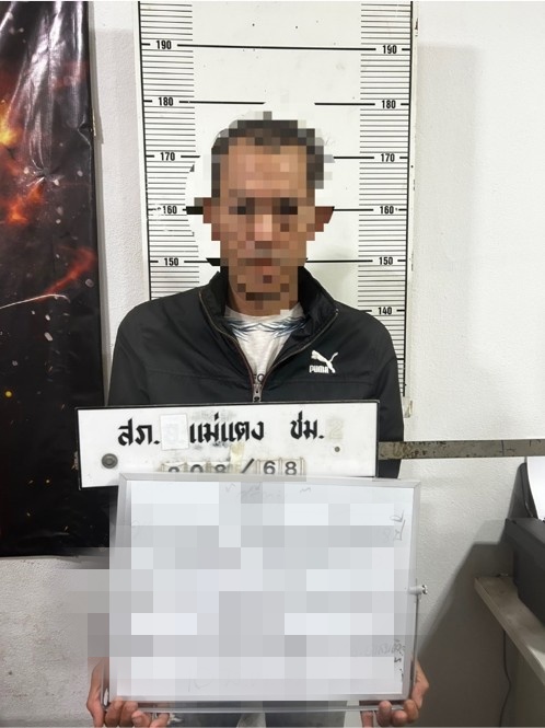 ชุดสืบสวนสภ.แม่แตง จับกุม นายที่ (นามสมมุติ) อายุ 48 ปี ผู้ต้องหาตามหมายจับศาลแขวงเชียงดาว